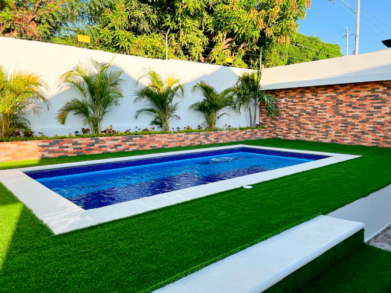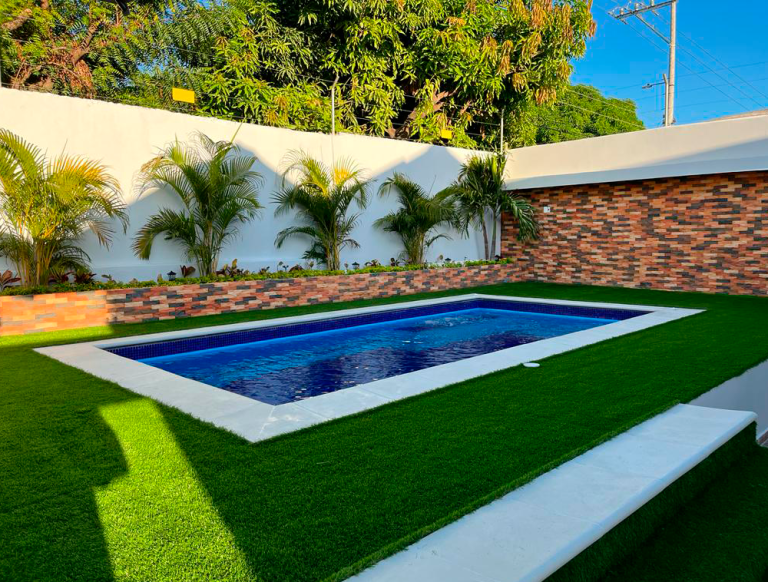 Nuestro cliente ubicado en Magangué, Bolívar, Colombia, buscaba tener un acabado natural para los muros de su proyecto, exactamente en la zona de piscina. Como propuesta le sugerimos instalar nuestro Espacato 5x20cm, un enchape que es muy conocido por su elegancia, textura y diseño, producto versátil que cuenta un acabado artesanal semirústico que brinda múltiples opciones de instalación y que además brinda un valor altamente arquitectónico, que combinado con luz directa encuentra el equilibrio perfecto, logrando crear espacios contemporáneos donde nuestros materiales de barro cocido siguen siendo tendencia.